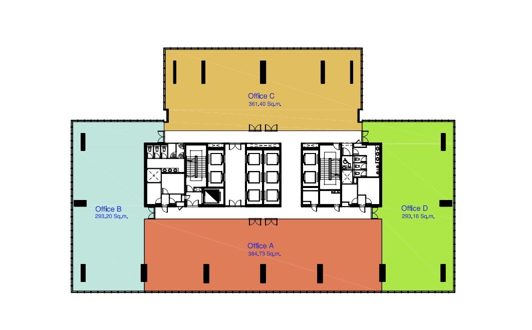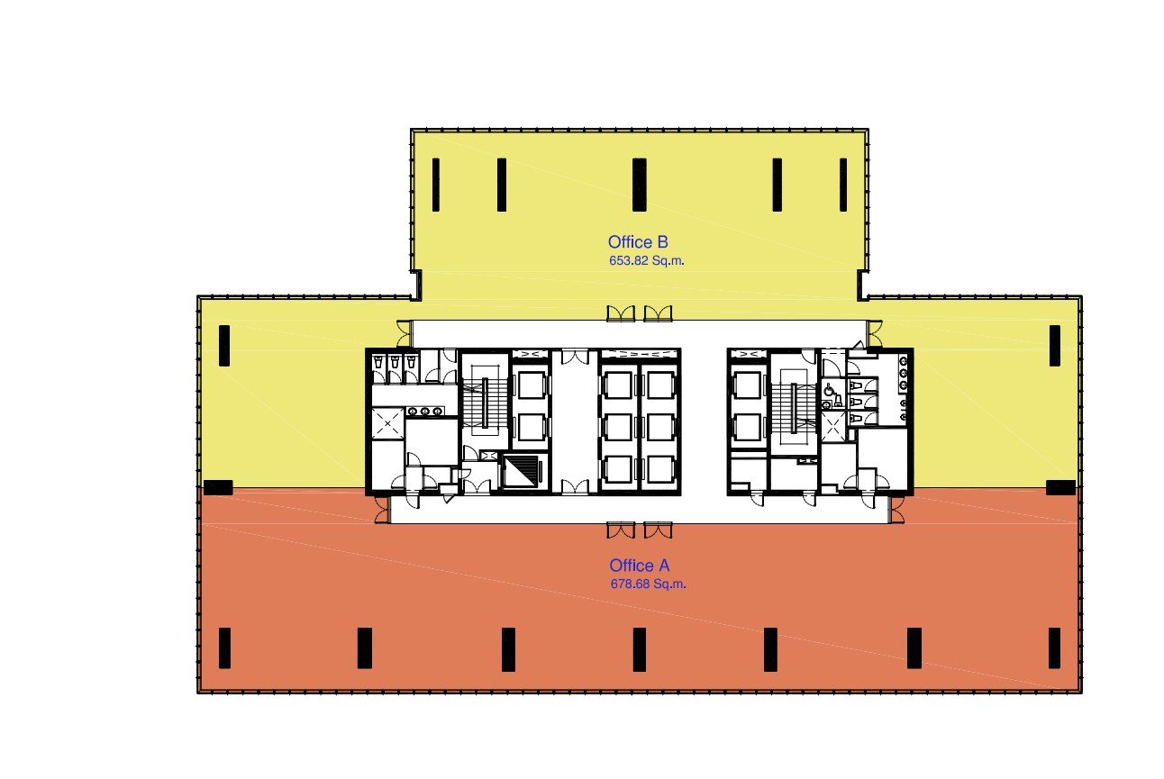 High ceilings, structured layouts, and modern infrastructure support a productive work environment, while the option to customize entire floors provides added flexibility for corporate branding and functional planning.