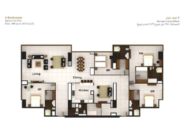 Al Durrah Tower offers 1 to 4 bedroom apartments and a limited number of luxury penthouses.