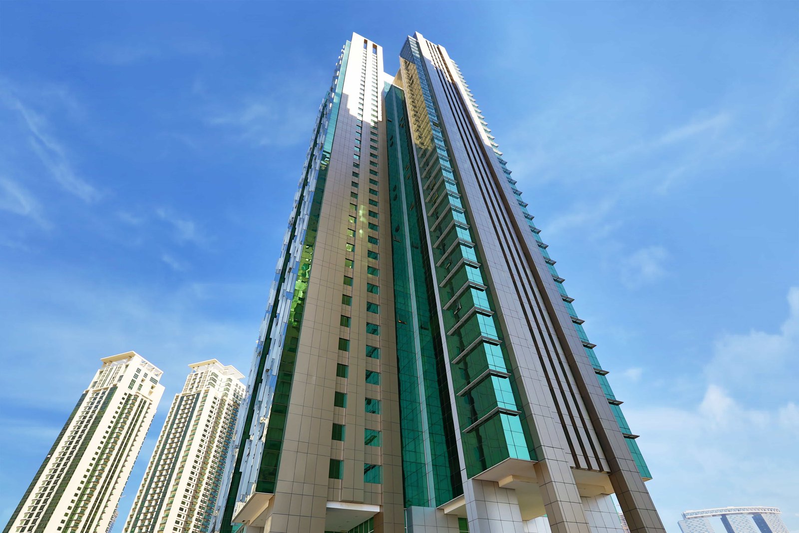 - Views: Arabian Gulf, marina, and city skyline