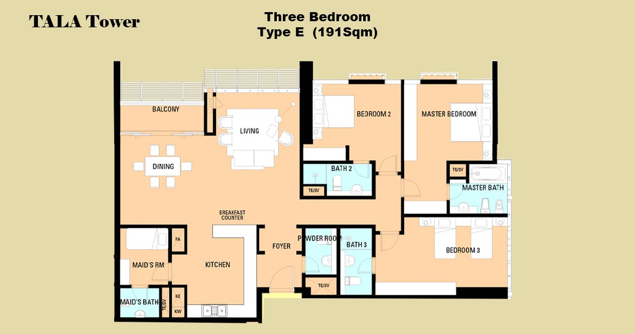 TALA Tower features 375 well-planned residential units offering multiple layouts to suit individuals, professionals, and families. Apartments are thoughtfully designed with generous living and dining areas, multiple bathrooms, and private balconies. Two-bedroom units include an additional flexible room ideal for a study, storage, or dressing space, while three-bedroom apartments feature maid’s rooms with attached bathrooms. High-quality finishes, efficient layouts, and large windows ensure excellent natural light and everyday comfort, making the apartments ideal for both owner-occupiers and rental portfolios.